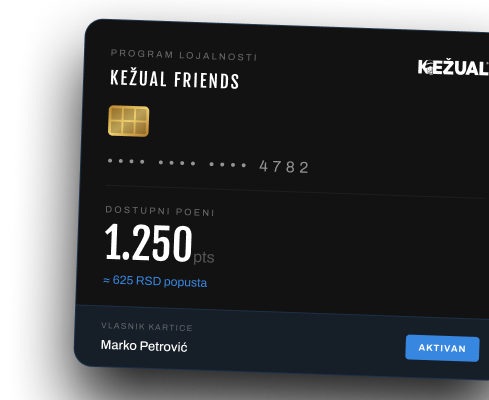Godinama sa našim kupcima delimo strast prema modi i želimo da svaka kupovina bude posebno iskustvo. Zato smo kreirali Kežual Friends program lojalnosti koji nagrađuje tvoju vernost i donosi dodatne pogodnosti.